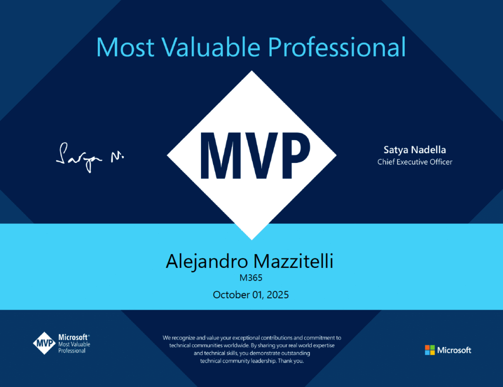 Microsoft me ha otorgado el premio Microsoft Most Value Professional para la categoría Microsoft 365/Teams y para mi es tono un honor recibirlo. Pero hasta aquí no he llegado sino fuera por el apoyo de Enrique Dutra quien confió en mi y aportó su recomendación. Enrique es un gran amigo y colega con quien he compartido grandes momentos de comunidades y de trabajo. Sencillamente GRACIAS!